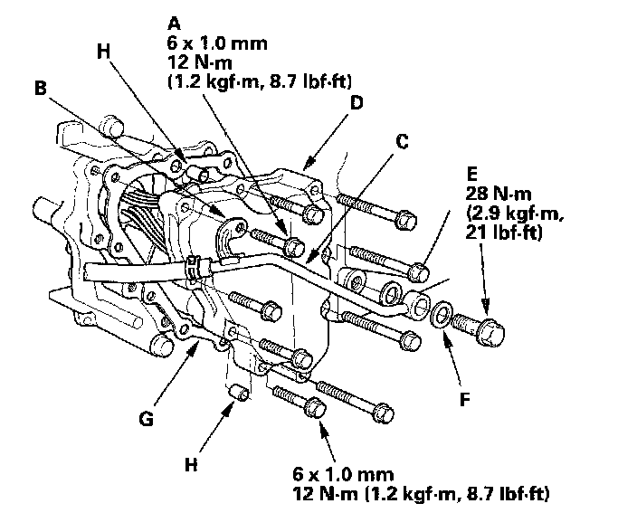 6. Remove the shift solenoid valve cover, gasket (G), and dowel pins (H).