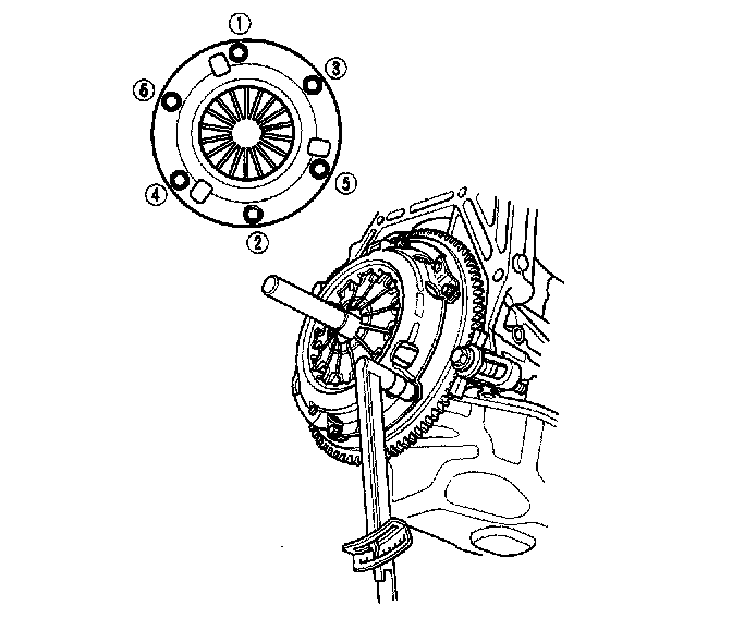 1. Temporarily install the clutch disc onto the splines of the transmission mainshaft. Make sure the clutch disc slides freely on the mainshaft.