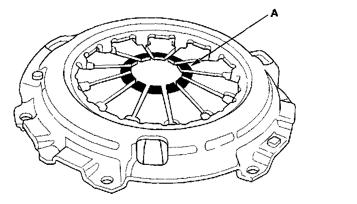4. Inspect the fingers of the diaphragm spring (A) for wear at the release bearing contact area.