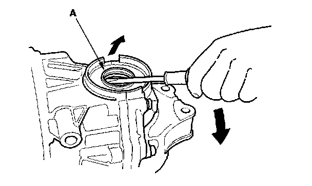 NOTE: Be careful not to damage the shaft or case while prying out the seal.