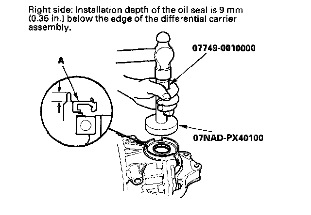 1. Remove the oil seals (A) from the differential housing.