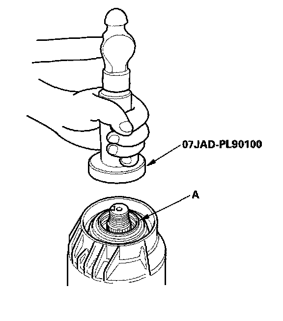 4. Install the oil seal (A) squarely using the special tool. Be careful not to damage the lip of the oil seal.