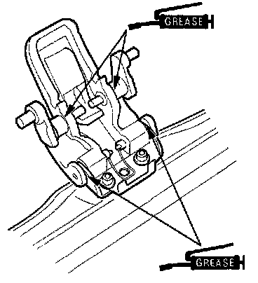 - Apply multipurpose grease to the handle pivot portions and latch arm moving portion as indicated by the arrows.