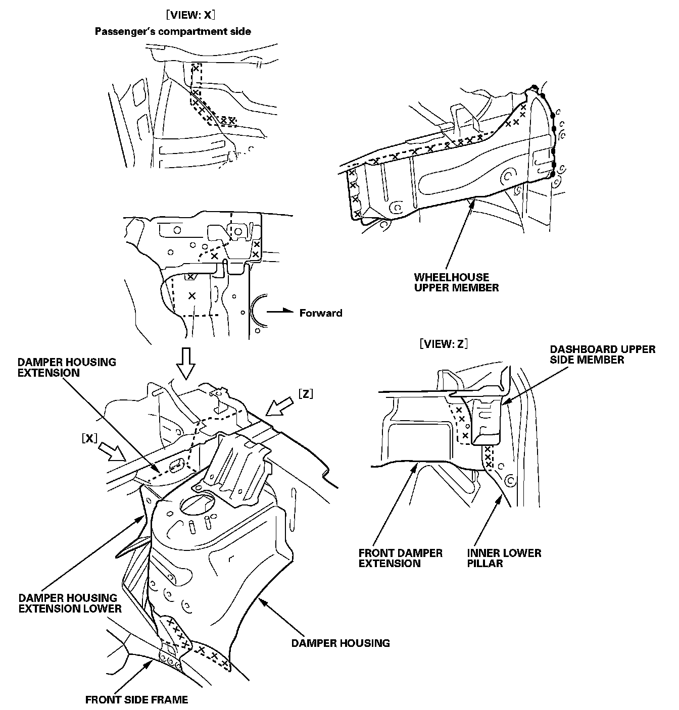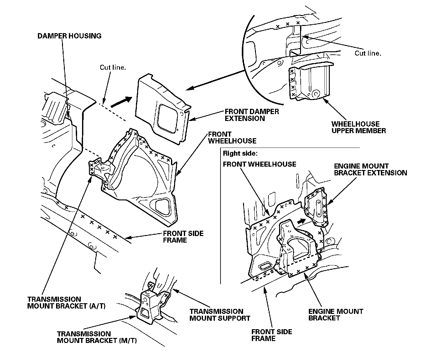 - When replace the front wheelhouse, if necessary, cut the front damper extension.