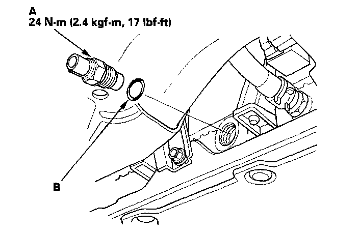 3. Disconnect the radiator fan switch connector (A), then remove the radiator fan switch (B).