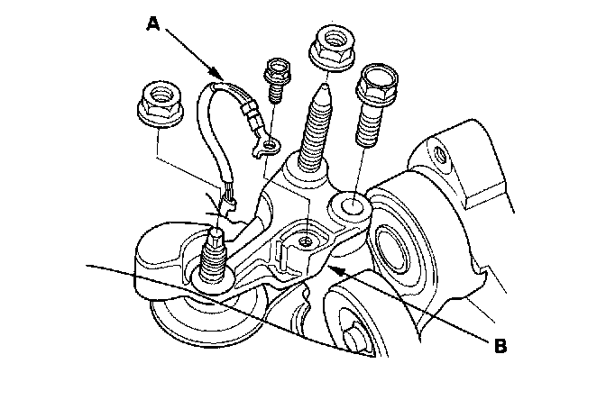 11. Remove the ground cable (A), and remove the upper engine mount bracket (B).
