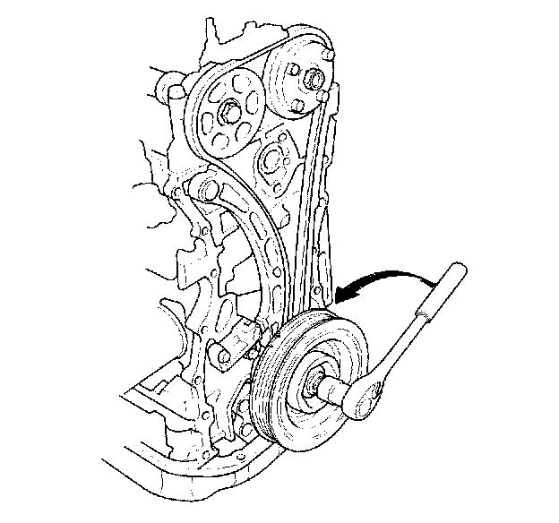 15. Turn the crankshaft counterclockwise to compress the auto-tensioner.