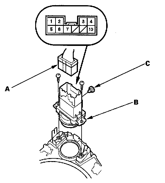 2. Disconnect the 10P connector (A) from the hazard warning switch (B).