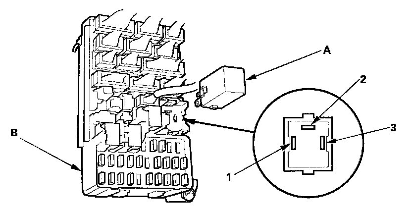Turn Signal/Hazard Relay Input Test1. Remove the turn signal/hazard relay (A) from the under-dash fuse/relay box (B).