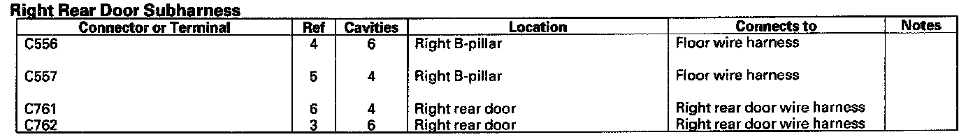 Right Rear Door Sub-harness: