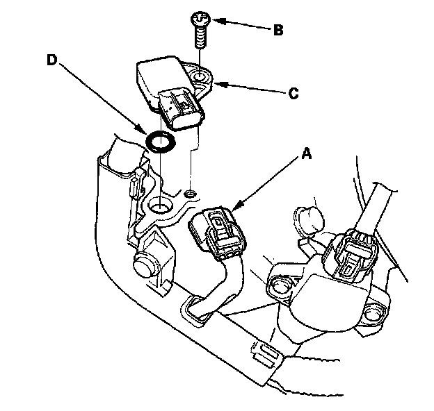4. Install the sensor in the reverse order of removal with a new O-ring (D).