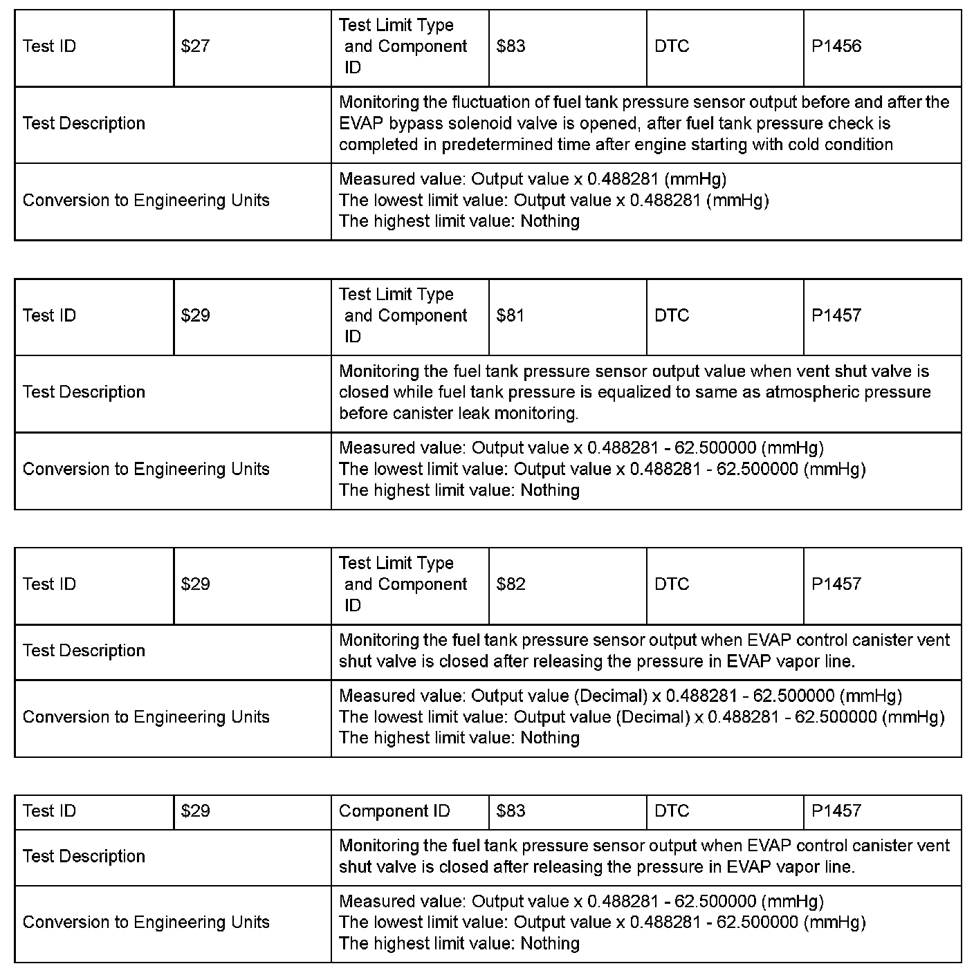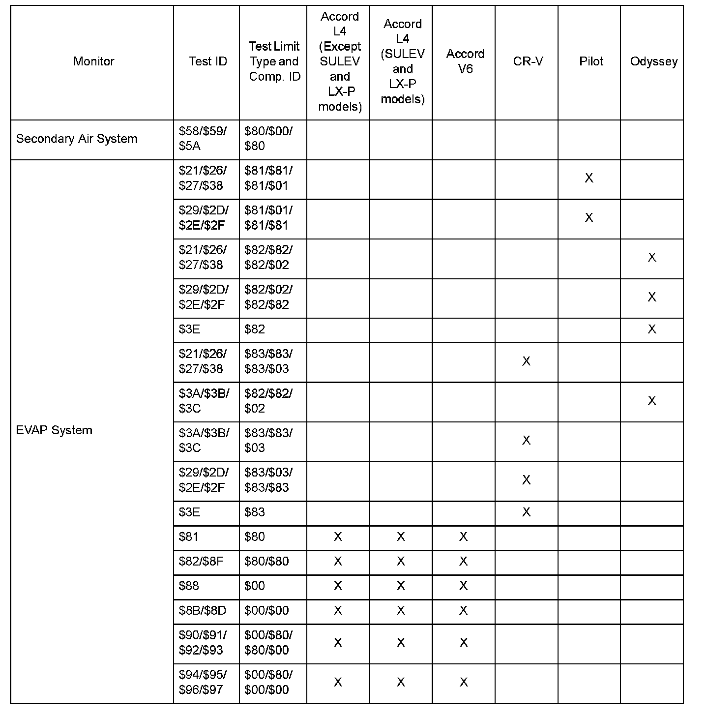 SAE J1979 Mode $06 Test Information: All 2004 Hondas