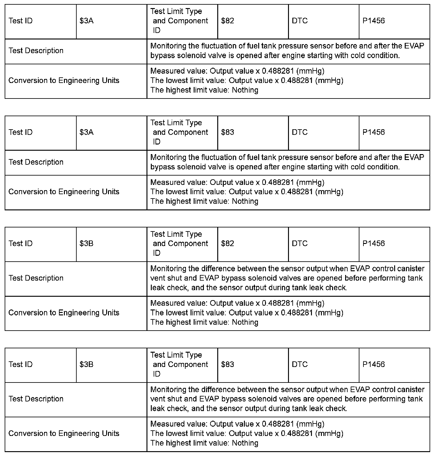 Mode $06 Test ID by Model: Group 3