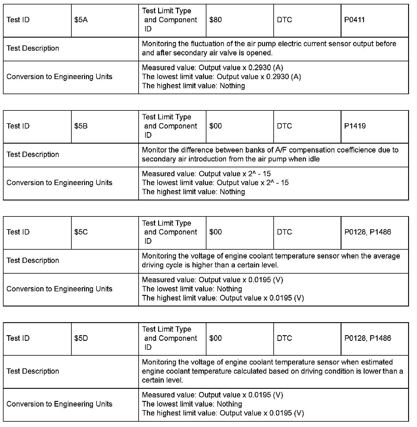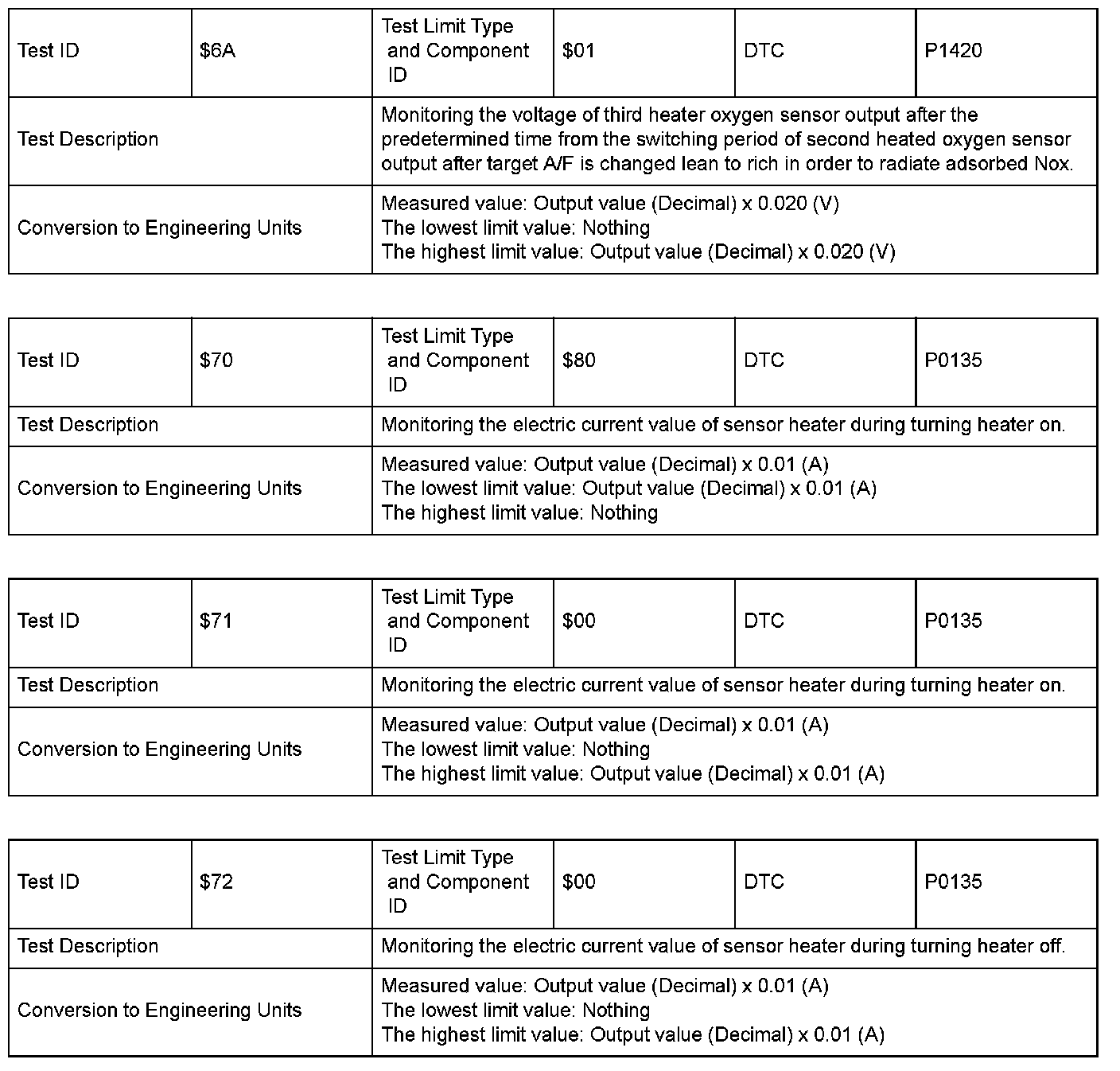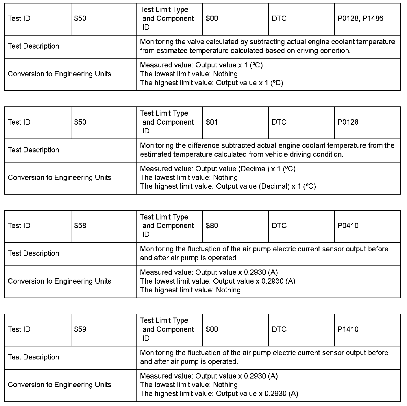 SAE J1979 Mode $06 Information by Test ID