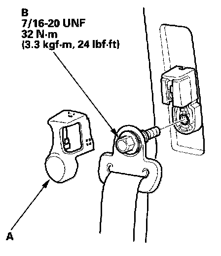10. Install the seat belt in the reverse order of removal, and note these items: