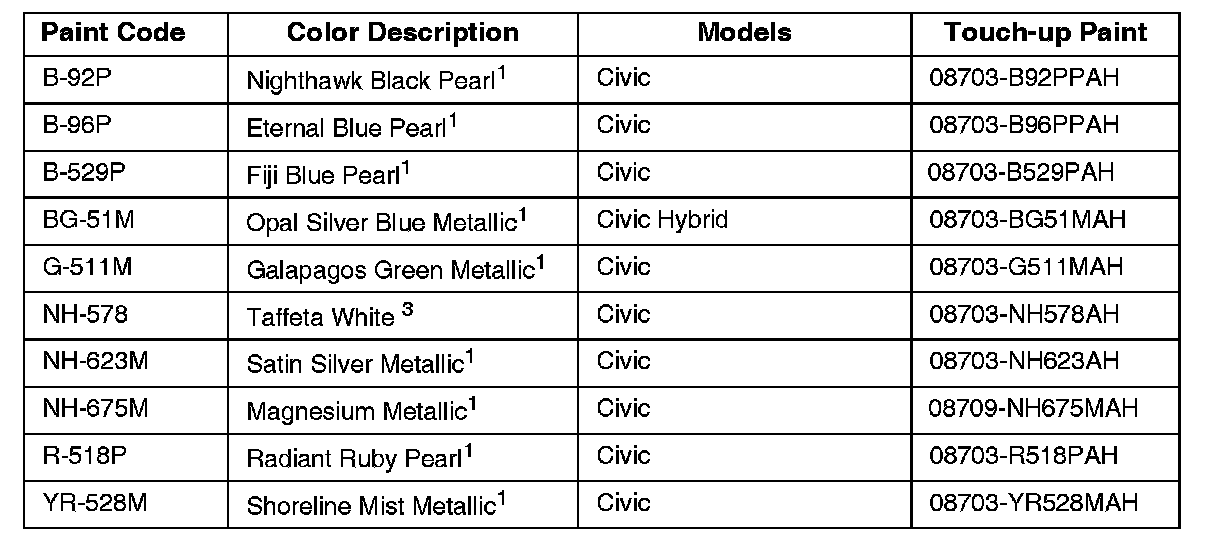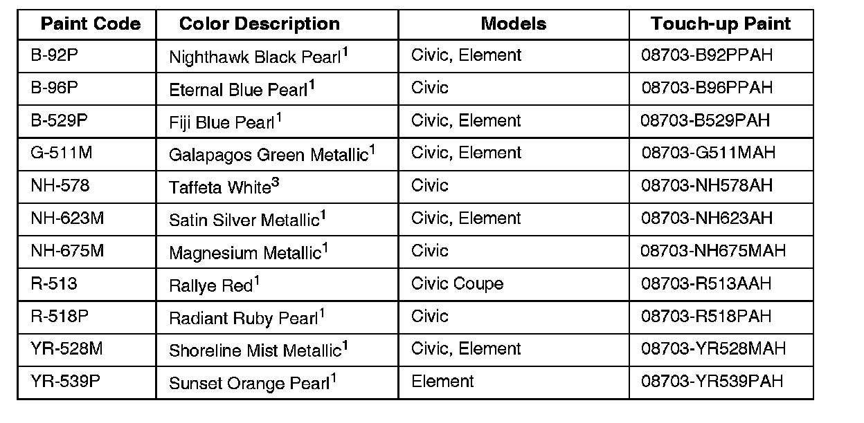 *American Honda does not endorse any paint company or type of paint; this information is for reference only.