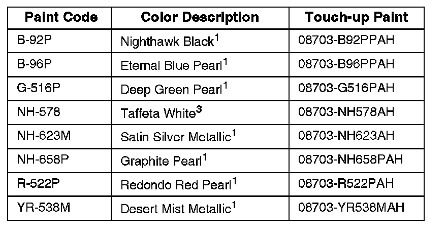 The number following the paint description is the paint process used during the vehicle manufacture:
