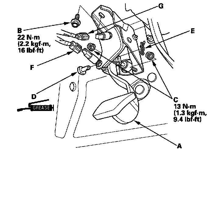 4. Remove the clutch pedal (G).