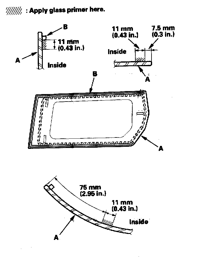 - Never touch the primed surfaces with your hands. If you do, the adhesive may not bond to the quarter glass properly, causing a leak after the quarter glass is installed.