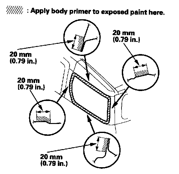 - Do NOT apply body primer to any remaining original adhesive on the flange.