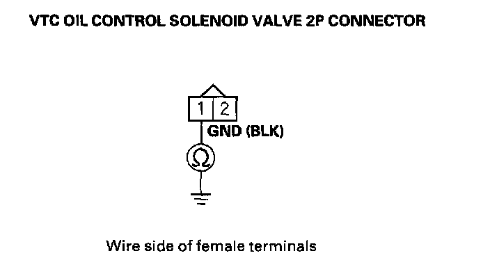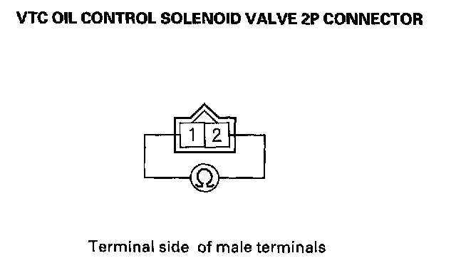 8. Measure resistance between VTC oil control solenoid valve 2P connector terminals No.1 and No.2.