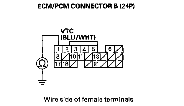 12. Check for continuity between ECM/PCM connector terminal B1 and body ground.