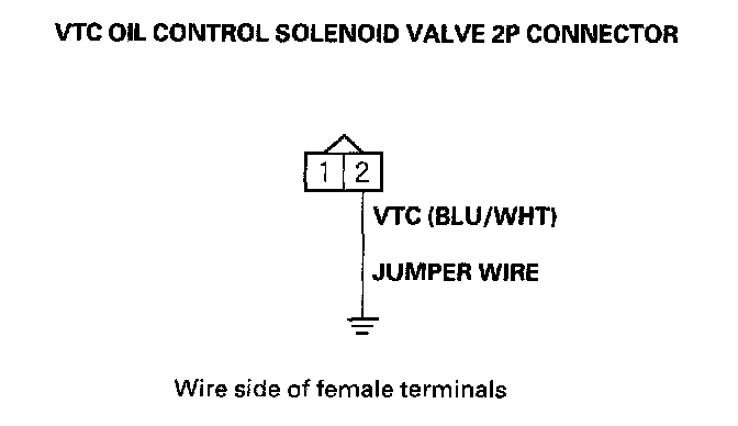 13. Connect VTC oil control solenoid valve 2P connector terminal No.2 to body ground with a jumper wire.