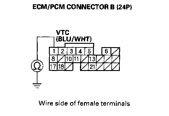 14. Check for continuity between ECM/PCM connector terminal B1 and body ground.