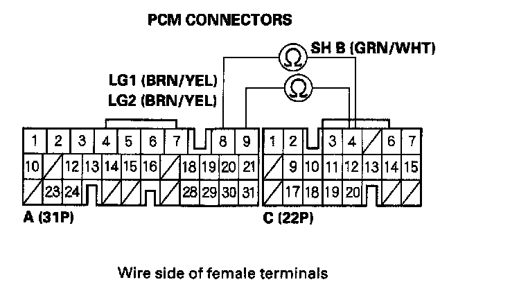 9. Disconnect PCM connectors A (31P) and C (22P).