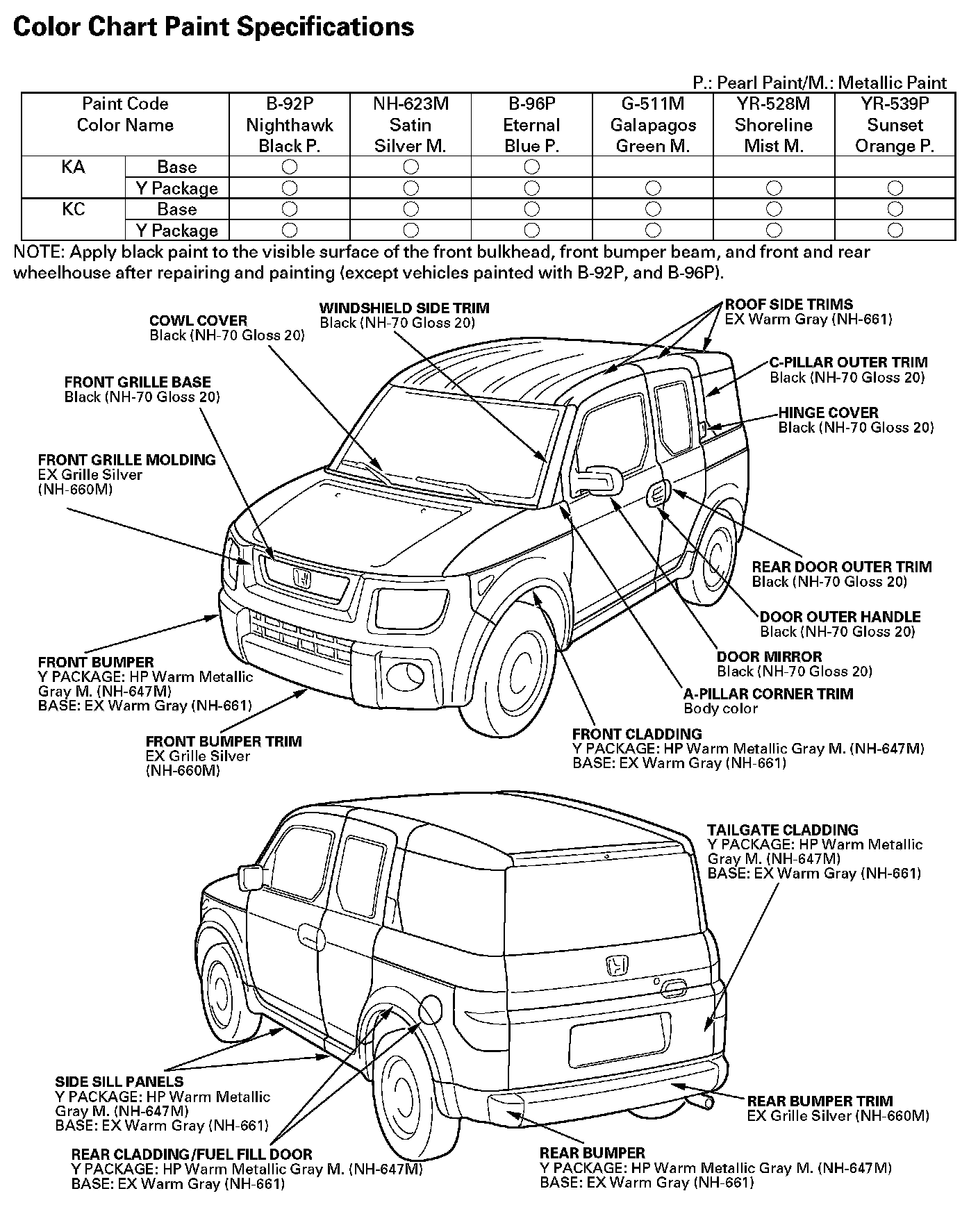 Color Chart Paint Specifications