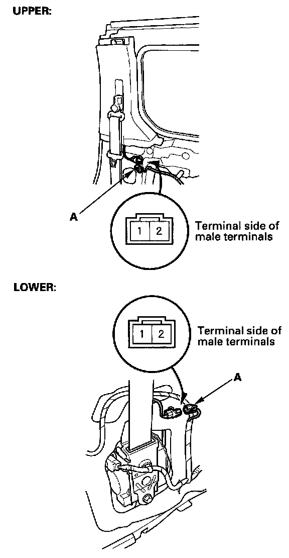 2. Disconnect the 2P connector (A) from the rear door upper and rear door lower switch.