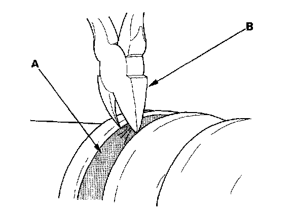 ^ If the boot band is a welded type (A), cut the boot band (B).
