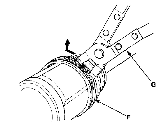 ^ If the boot band is a low profile type (F), pinch the boot band using a commercially available boot band pincers (G).