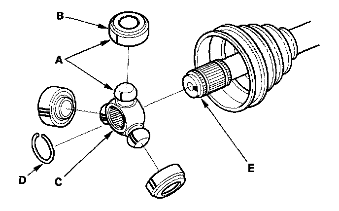 6. Mark the spider (C) and driveshaft (E) to identify the position of the spider on the shaft.