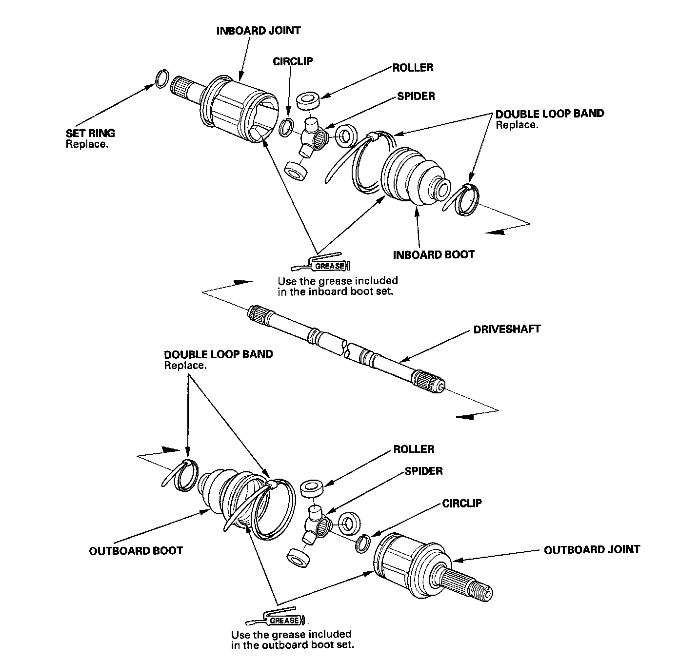 6. Pack the inboard joint with the joint grease included in the new driveshaft set.