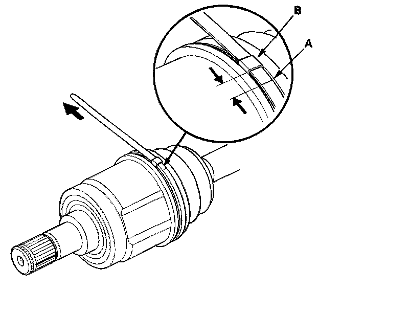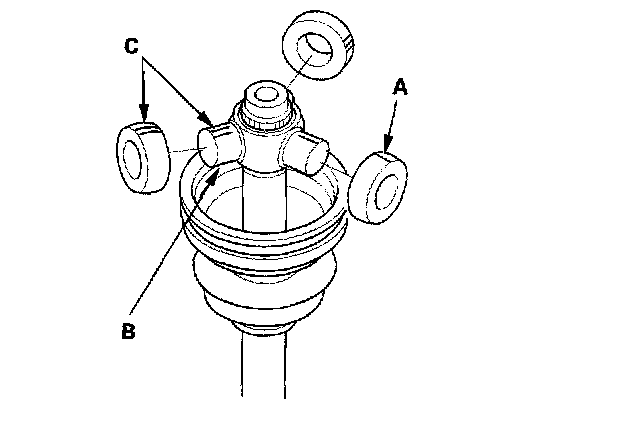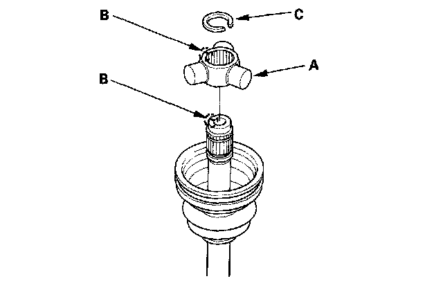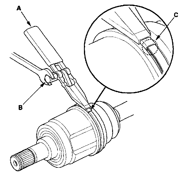 4. Fit the circlip (C) into the driveshaft groove. Always rotate the circlip in its groove to make sure it is fully seated.