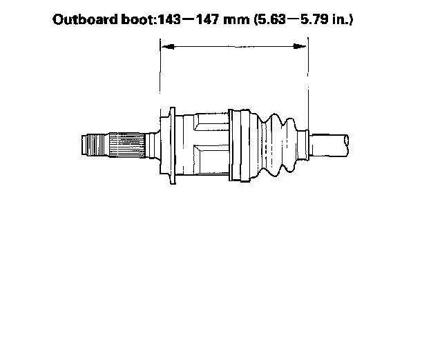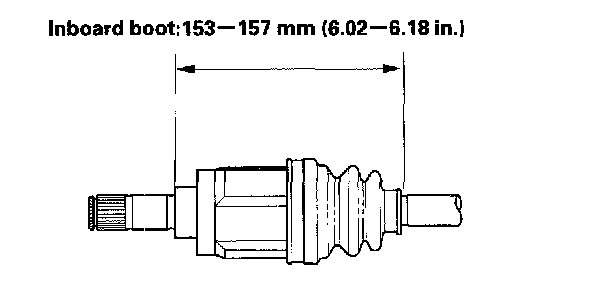 8. Adjust the length of the driveshafts to the figure, then adjust the boots to halfway between full compression and full extension. Make sure the ends of the boots seat in the grooves of the driveshaft and joint.