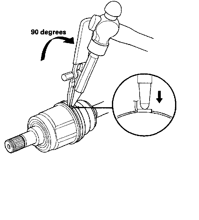 7. Fit the inboard joint onto the driveshaft, and note these items: