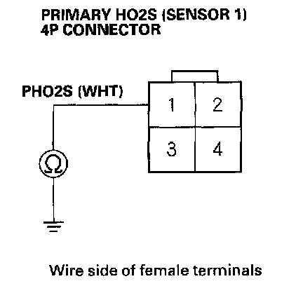 11. Check for continuity between primary HO2S (Sensor 1) 4P connector terminal No.1 and body ground.