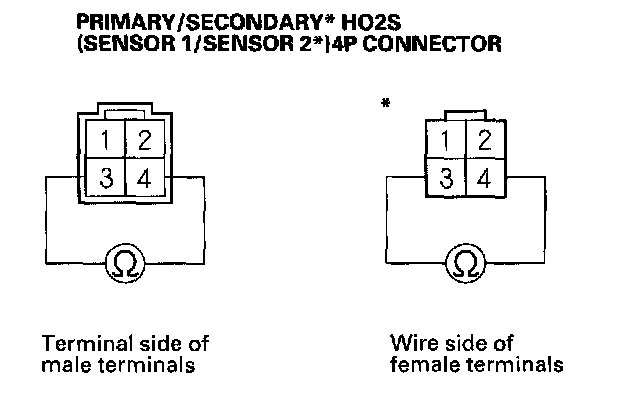 5. At the HO2S side, measure resistance between HO2S 4P connector terminals No.3 and No.4.