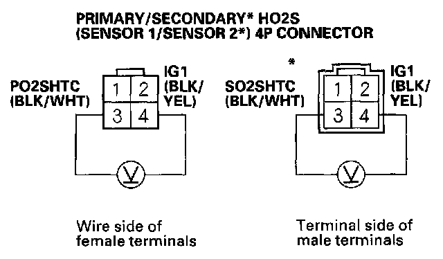 8. At the wire harness side, measure voltage between HO2S 4P connector terminals No.3 and No.4.