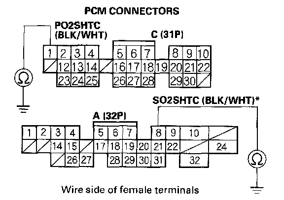 15. Disconnect PCM connector C (31P) (PCM connector A, 32P) *.