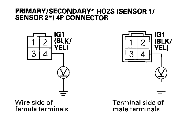 4. Disconnect the HO2S (primary or secondary *) (Sensor 1 or Sensor 2*) 4P connector.