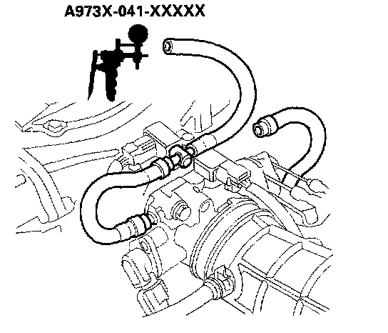 5. Install a vacuum pump to the evaporative emission (EVAP) canister purge valve (A) on the EVAP canister side.