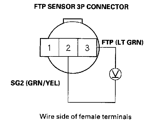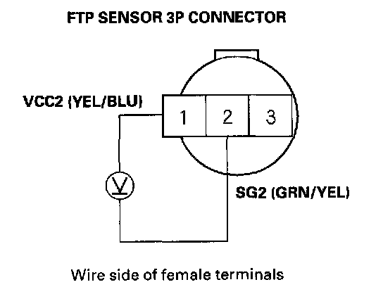 10. Measure voltage between FTP sensor 3P connector terminals No.1 and No.2.