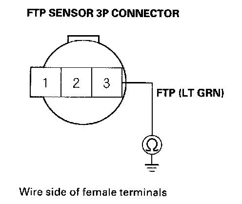 14. Check for continuity between FTP sensor 3P connector terminal No.3 and body ground.