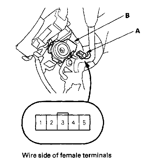 4. Disconnect the 5P connector (A) from the immobilizer control unit-receiver (B).
