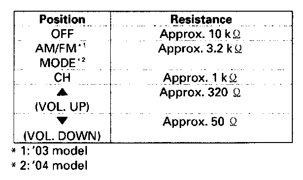 5. Measure resistance between the No. 3 and No. 4 terminals in each switch position according to the table.