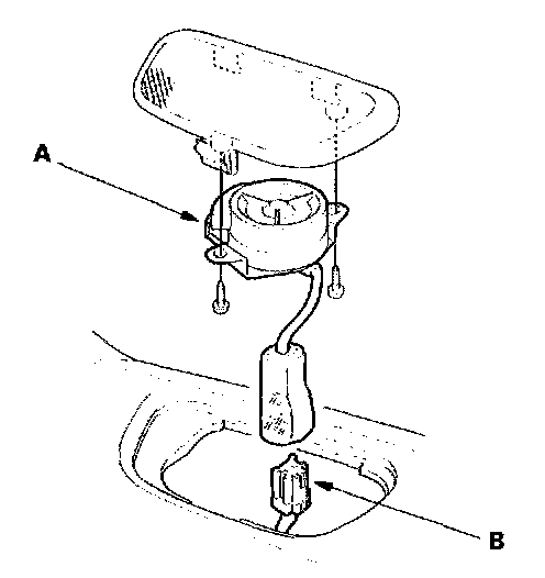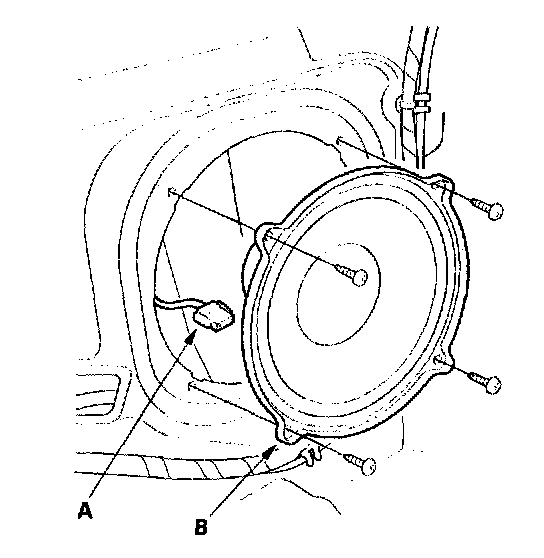 1. Carefully pry the tweeter (A) out of the dashboard, then disconnect the 2P connector (B) from the tweeter.