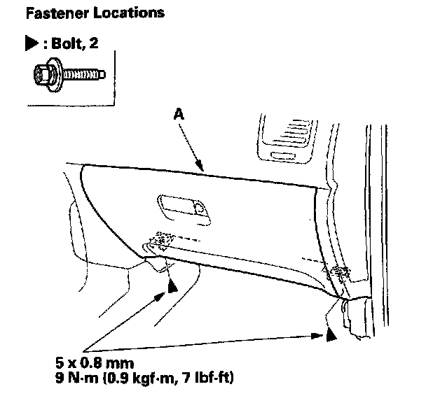 3. Remove the bolts, then remove the glove box (A).